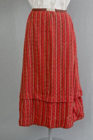 Kjol av rödbottnigt plättatyg, numera sneddad.