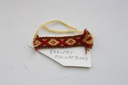 Vävt band i rött, grönt och gult. Från Nykarleby.