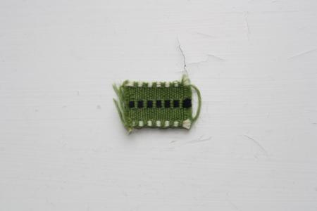 Vävt ljusgrönt band med två vita och en svart rand. Från Föglö.