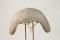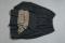 | Bindmössa av svartprickigt tyg och med vävda band i blått och vitt. | |
