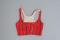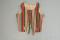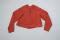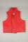 | Väst av rött tyg med små svarta ränder och prickar rätt upp och ner. | |