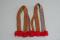 | Liv av rödbottnigt tyg med smala röbruna ränder. | |