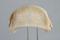 | Bindmössa av vitrandigt tyg med broderier. | |
