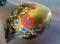 | Band med orange botten, röda och gröna inslag.Två röda tofsar fastsatta med tvinnade band i varje ände. Från Korsnäs. | |