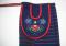| Kjolsäck blå med röda kanter, rundad sidöppning, broderad. Ej bra färger. Från Kronoby. | |