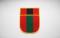 | Vävt band med grönt botten, röda inslag, svarta kanter. Avklippta ändar med tofsar. Från Sund. | |