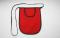 | Kjolsäck, röd med gula kanter med lock, knäppt med en knapp. Från Sideby. | |