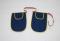| Två kjolsäckar, blå med gula kanter och med rundad ficköppning, fästade vid ett band som löper runt midjan. Från Purmo. | |