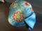 | Styckomössa, blå med broderier. Från Borgå. | |