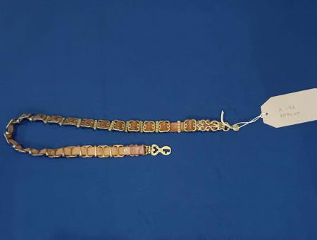 Bältet i två delar. Två bleck och lås. B: 12 mm, L: 82 cm.