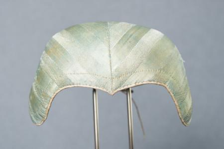 Bindmössa, stor, ljusgrönrandig utan rosett, 5 veck i vinkel.