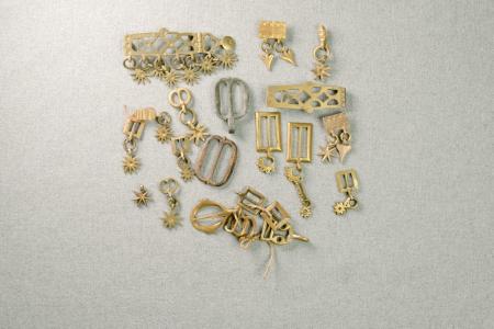 Prov på söljor och andra delar till söljebälten.