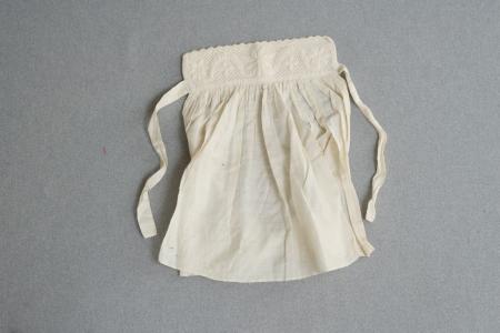 A261. dec. 1929 Ormsö Krage Löskrage för vuxen. Bomull broderad med plattsöm, axelspjäll, handsydd. Kommentar: Krage; 22 cm, H: 6 cm, hela kragen; H: 34 cm, B: 34 cm, knytband; L: 25 cm.