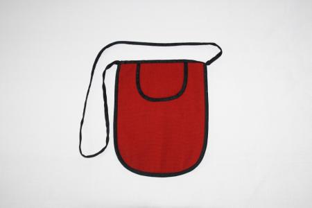 Kjolsäck, röd med svarta kanter. Från Pedersöre.