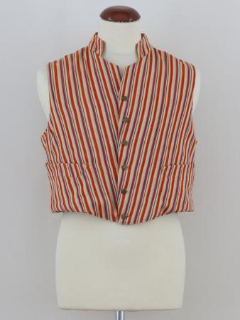 Väst av halvylletyg med smala ränder i granna färger. Från Borgå.