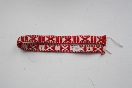 Del av band i rött och vitt. Från Lappfjärd.