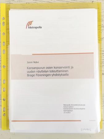 Kansanpuvun osien konservointi ja uuden näyttelyn toteuttaminen Brage Föreningen-yhdistykselle