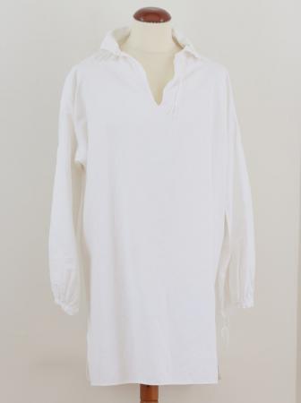 Skjorta med bred krage, sprund som knyts med snöre.